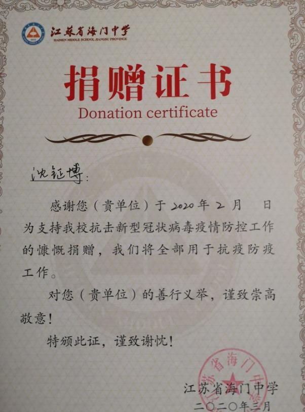 ![]() 不少人关注沈钲博的家境,据悉沈钲博是江苏南通海门人,目前在美国伯克利音乐学院就读,学历就看他读完本科是否还接着读硕士了。微博上认识他的说他“家境优渥”,豆瓣上熟悉他的人说他“家里巨有钱”,曾经传出过一个他的黑料,就是中考的时候曾经花了几十万买卷子,咱们暂且不管这个料是真的假的,但是花几十万办这事能从侧面说明,大家都知道他家里很有钱,此外今年疫情期间,他还给自己的学校“海门中学”捐了几千个口罩;此外目前他在伯克利读书,这个学校虽然不是花钱就能进的,但是你得有真才实学,家里为培养他也是花了巨资的,这一切都说明他的家境确实很好! ![]() 图为他捐口罩的奖励 ![]() |