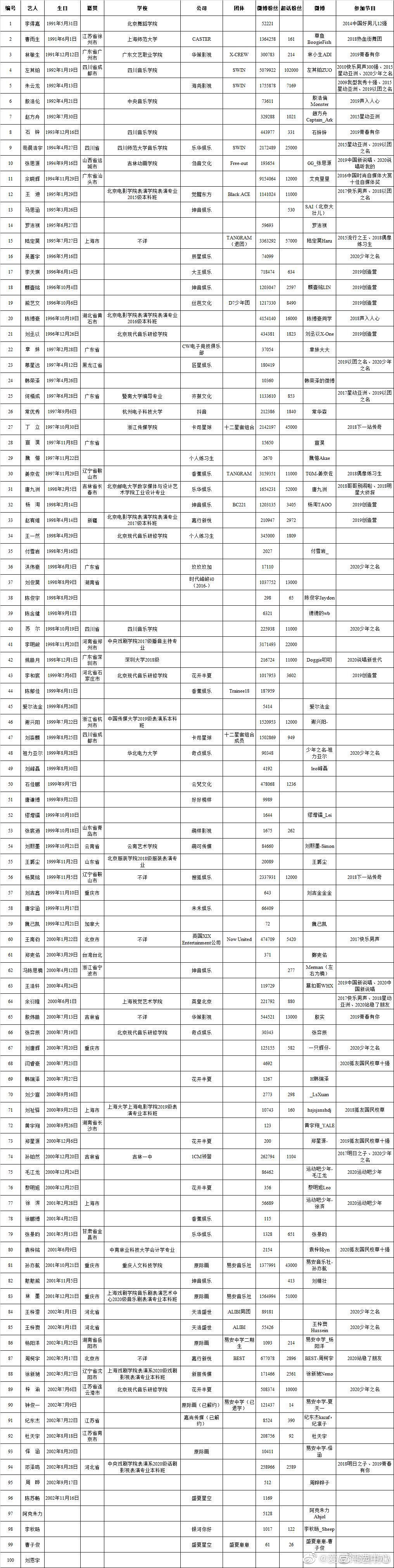 ![]() 根据一份青春3训练生的名单和资料来看,徐新驰的家乡是辽宁沈阳的,身高187CM(还有种说法是190CM),在中学时期就热爱话剧表演,还参加过集体朗诵比赛,在2020年的艺考中,以优异的成绩考上了上海戏剧学院,他的文化课成绩是381分,专业课成绩是全国第21名。 ![]() |