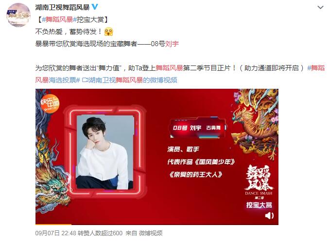 因着在《国风美少年》中绝美古典舞的表演,很多人在2019年《舞蹈风暴》第一季时就开始期待刘宇的身影,因为他太适合这个节目了。