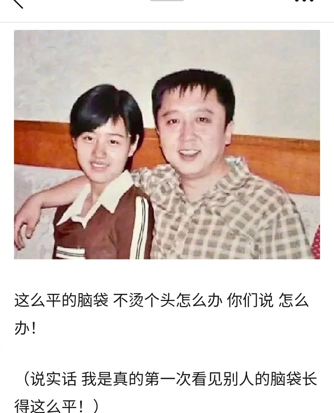 下面是于谦年轻时候跟媳妇的一张没烫头的照片 ![]() 大家看于谦不烫头的这形象其实还行,但是于谦本人肯定不满意,直到第一次烫头之后,头发蓬松起来,完美了!从此一发不可收拾。 ![]() |