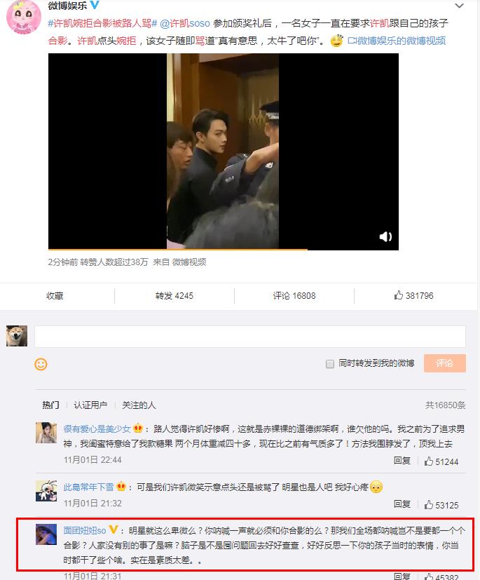 近日许凯在参加完颁奖典礼后被粉丝围堵,有粉丝要求合影,许凯可能是累了或者心情不是很好,点头婉拒了合影的请求,一位粉丝随后嘟嘟囔囔的说道”真有意思,太牛了吧你”以表达对许凯的不满,对此许凯没理会,径直进入了电梯;对此网友表示“明星就这么卑微吗,不跟粉丝合影也要被骂”,对此小编觉得真不是许凯有意思,而是这位女粉丝“太有意思了”。