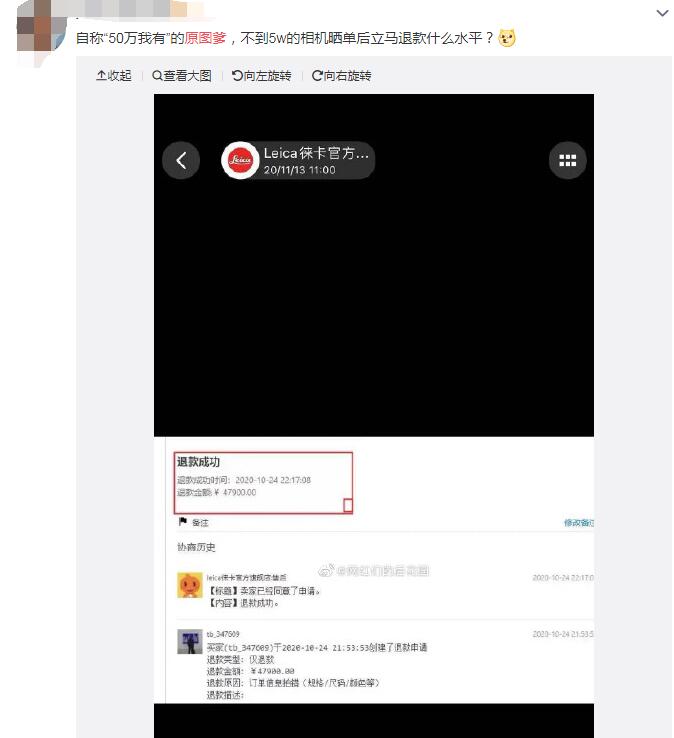而针对原图爹的网暴也开始了,各种扒坟,爆原图哥和他的小号里里之前骚扰其他女性的截图,号称买了5万块的相机晒图后又马上退款,攻击他的长相等等。