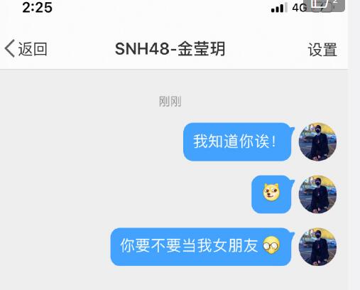 一日SNH48的成员金莹玥用大号关注了她,疑似是为了方便拿表情图,原图爹看到被美女偶像关注了心里自然有些小激动,决定与对方发私信调戏一下。
