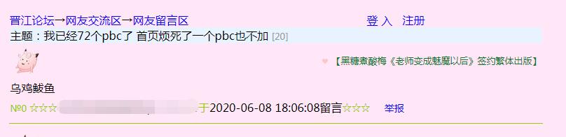 pbc是指的屏蔽词汇组,晋江乱七八糟的帖子很多,有的人不想看到一些词语相关的帖子,可以通过设置把词语加到pbc中,再刷帖子的时候就看不到此类的帖子了。
