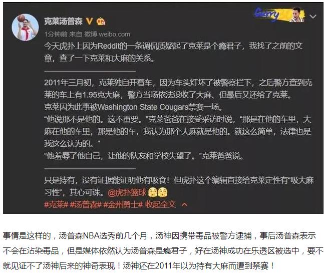 ![]() 克莱汤普森1990年出生的美国洛杉矶的一个体育世家,父亲是前NBA湖人队球员,母亲曾经是大学的排球运动员,家里的运动基因非常好,2008年进入华盛顿州立大学,在学生时代,他就是连球场上耀眼的明星,也顺利通过选秀进入了勇士队,不过伴随着运动场上的高光,私下的汤神生活有点混乱,曾经在2011年曝出DM事件,而这事发生在选秀前的几个月,因此汤神也被媒体形容成为一个“瘾君子”,下面是整个DM事件的全过程: ![]() 而也正是因为汤神的私生活比较混乱,大学的时候携带违禁品,他还被大学起诉过。不少运动员因为私生活不节制而毁掉了自己的职业生涯,要想保持运动员的顶级水准,需要过着苦行僧般的生活,坚持训练、注意作息、克服不良习惯都非常的重要! ![]() |