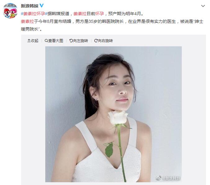 姜素拉的老公比她大8岁,今年只有35岁,是韩国一所医院的院长,在业界是很有实力的医生,被说是“绅士暖男院长”。二人于今年8月份宣布结婚后,因疫情原因一直没有举办婚礼。