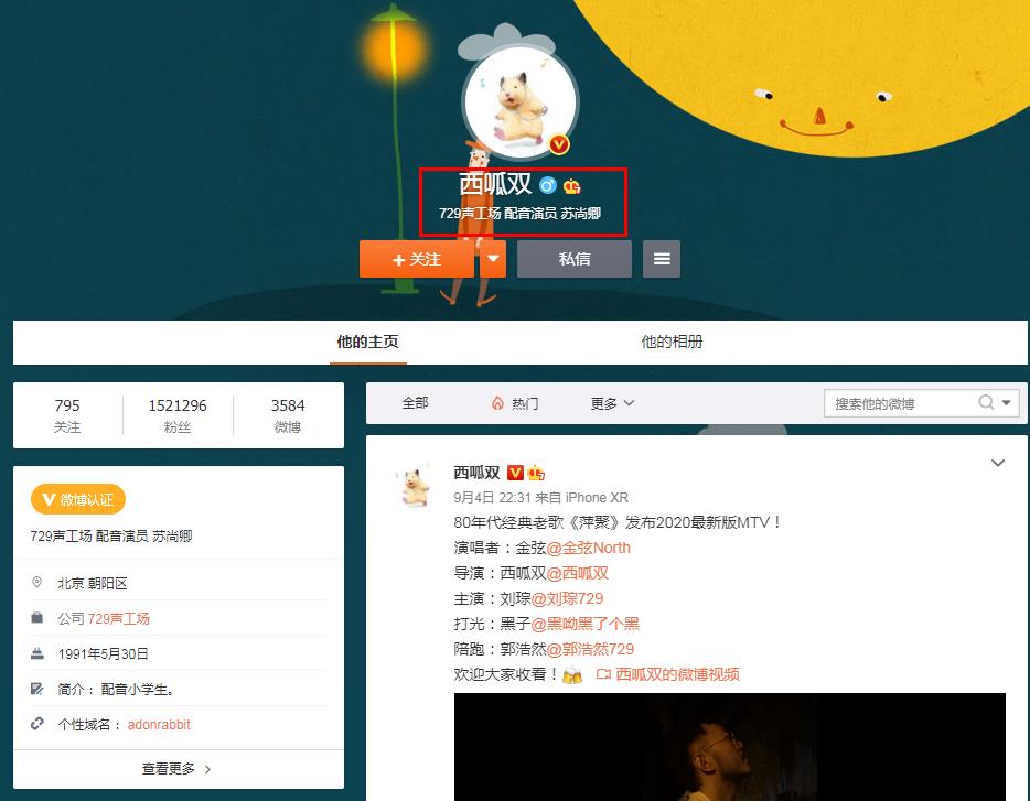 熟悉配音圈的人对苏尚卿这个名字都不会陌生,作为一名知名的配音演员,他是729声工场的主力成员,目前一直居住在北京。2016年,苏尚卿为动画电影《大鱼海棠》中湫这个角色配音,并因此受到广大网友的关注。其实除了这一电影作品外,苏尚卿还有很多配音作品,《择天记》、《天坑鹰猎》甚至于《甄嬛传》中都有他的配音,在很多的动漫游戏中,也都曾有他的配音出现。苏尚卿虽然以少年音取胜,但他并不是只会配少年音,对于各种不同类型的角色,他都能够轻松驾驭,并且在各种角色之间灵活转换,显示出了自己超强的配音功底。作为幕后工作人员的苏尚卿,凭借自己的声音魅力,也是圈粉无数。 |