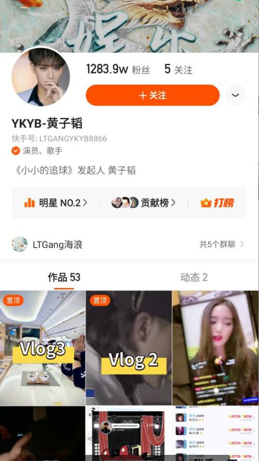 黄子韬目前是在快手平台直播,拥有1200多万粉丝,快手号:LTGANGYKYB8866 会不定期更新短视频作品并直播。