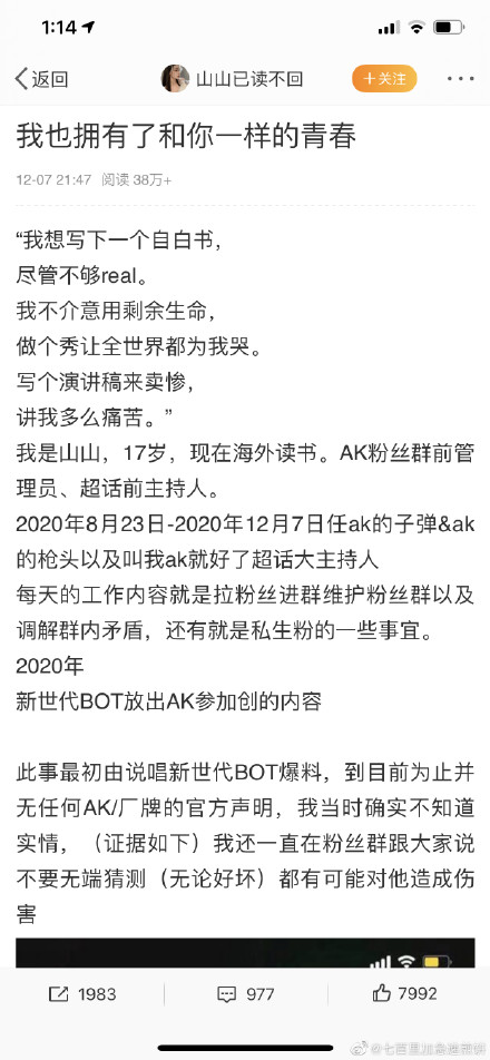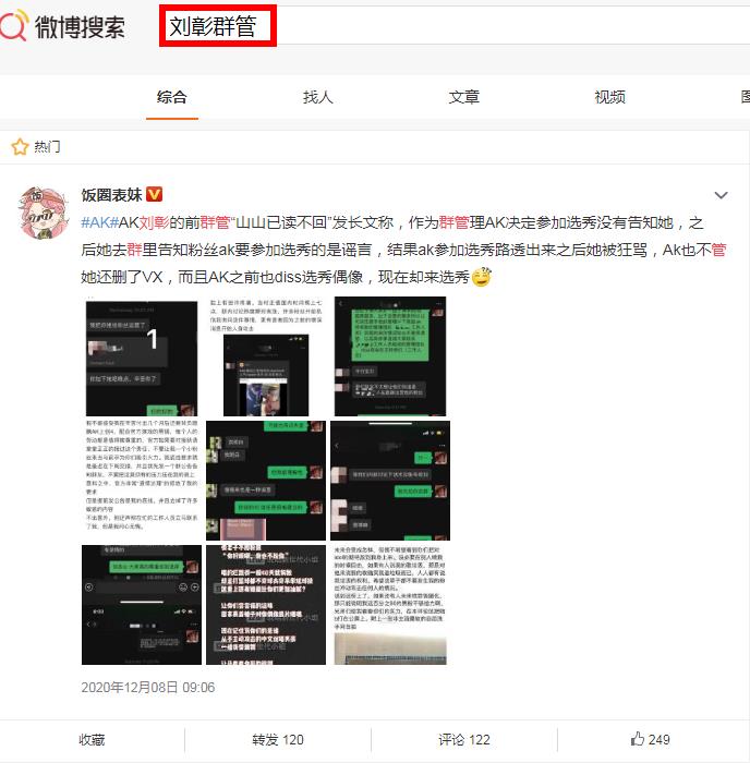 最近AK刘彰办了一件不太光彩的事,他的一个17岁的群管妹子尽心尽责的帮他维护粉丝群,但是他却对这个妹子持谨慎的不信任态度,很多事都对其隐瞒,在网络上曝光刘彰将要参加创4的消息后,也没第一时间跟这位群管妹子,这位妹子还傻啦吧唧的在群内辟谣,结果最终确定的消息出来后,这个妹子被骂惨了,虽然不是什么大事,但是确实挺替这位“出力不讨好”的妹子伤心的,这位妹子也不好惹,后来直接曝光了自己和刘彰,以及他工作人员的对话来进行反击。对于此事,有网友反馈称这件事是假的,是故意诋毁刘彰的谣言,具体大家自行判断。该消息来自微博,如下图,并非我们无根据写的。知道详情的可以相关信息到邮箱:#######,我们可以予以更正。 |