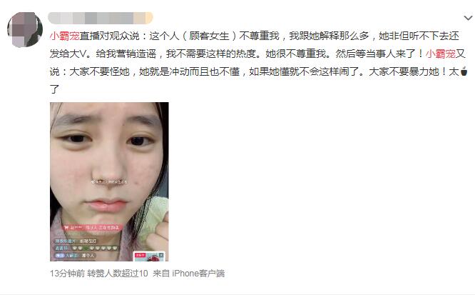 小霸宠在直播中对此事有解释过,牛肉本身是包装好的都是1公斤一份,并带有少许肥肉的,此客户要求把油边都去掉,只发纯瘦肉,小霸宠按照顾客的要求做了,给她发了出去。加上牛肉本身的流失的少许血水,顾客收到后只称了瘦肉的重量,这样确实有些不合理。小霸总后来也在直播中说,对方也是为小姐姐,她也不是故意的,只是不懂而已,大家也不要网暴对方,看来小霸宠真是位非常善良的小姐姐。
