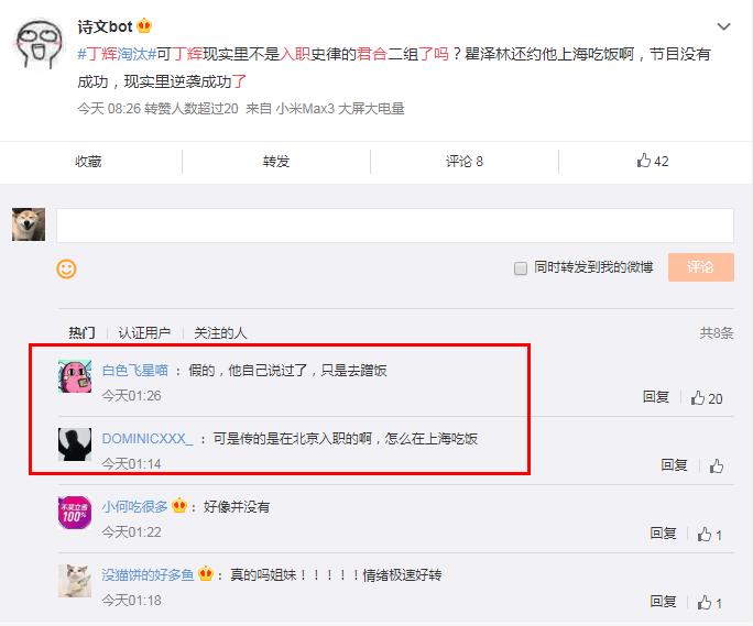 ![]() 至于丁辉被淘汰的原因,还是因为他的身份决定的,丁辉的身份是专业的律师,而对其进行考核的评委也是专业的律师,所以会对他的一些考核更加的严格,而非“双标”。 ![]() 此外,有知情人透漏,目前丁辉已经入职君合,12月1日已经正式在君合上班了,在史律二组,在北京入职的,当然也有网友提出反对意见,说既然在北京已经入职了,为何又去上海跟瞿泽林吃饭。不过丁辉自己说过了,节目播出后,已经有很多机会来找到他了,在节目中被淘汰,不能定义了他现实生活和未来的命运。 ![]() |