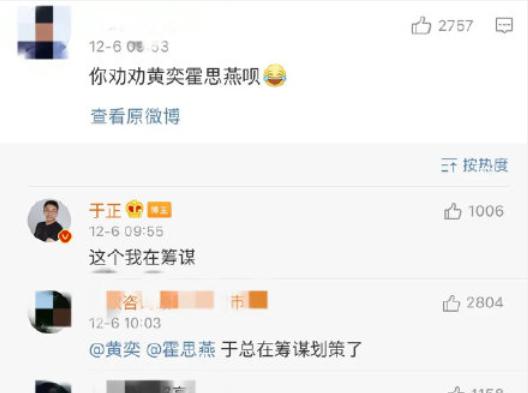 前几天于正劝和杜淳和印小天的消息让网友们很是抢白,大家纷纷去于正微博里面留言让他劝和其他娱乐圈矛盾人员,有人就在此提出了霍思燕和黄奕,于正回应说正在筹谋。这个劲爆了,大家一时间都进来说道两句,不过还有很多网友是有点懵的,霍思燕黄奕咋了不和吗?她俩是因为谁吵起来的,她们俩抢的男朋友是谁? 霍思燕黄奕因为谁吵起来的, 霍思燕和黄奕是因为姜凯吵起来的,倒也不准确。全部事情就是黄奕那时候闪婚闪离了一个对象,就是姜凯,对于这次的闪离两口子回复的原因也没有达成一致,后面就渐渐的传出了是霍思燕介入,所以才闪离的。起开始热度不大,后面渐渐的声响大了,霍思燕站出来直接微博上面发文说,别把你肥胖油头前夫扣在我身上等等,还讲了一些黄奕爱慕虚荣,是个怨妇等等的话语。 然后就是一系列的骂战,原来霍思燕觉得是黄奕在网上诋毁她,买水军说她是第三者之类的,后面更是挑明了撕开了,闹的热度挺大的。 她们俩抢的男朋友是谁? 她们俩抢的男朋友是杨溢,之前霍思燕怀疑黄奕在网上买水军带节凑诋毁她,诋毁的内容就是破坏黄奕和姜凯的婚姻,成为他们感情第三者,而霍思燕形容姜凯是黄奕肥胖油头的前夫,可见是看不上他的。随后,黄奕霍思燕还有杨溢的感情纠葛就被网友们给揪出来了。 就是黄奕和姜凯结婚之前的男友杨溢,而杨溢后面说是跟霍思燕在一起了,错综复杂的骂战是持续了不少时间,网友们看的很热闹,很满足,后面渐渐的就归于平静了,而暗地里黄奕和霍思燕是再也和好不了了。这次的于正还信心满满的表示在筹谋中,不知道会是个怎么样的发展了。