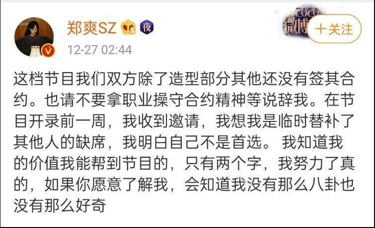 日前,作为《追光吧哥哥》的观察员郑爽,突然在微博宣布将退出《追光吧哥哥》引起众多网友的诧异!郑爽将较于其他嘉宾,说话确实无所顾忌,经常因为自己的不太恰当的言论被黑。但也正是因为她的这份直爽敢说,让人感觉很接地气,她的那些吐槽说出了屏幕前的你我的心里话,赢得了不少网友的喜爱。