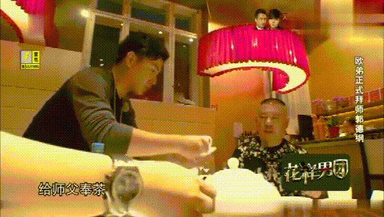 第一,在《今夜有戏》20100709期里面,欧弟和郭德纲相识,下面是当时欧弟模仿郭德纲的表情: ![]() 第二、在参加东方卫视《花样男团》节目第20160702期的时候,两个人正式商定拜师,欧弟下跪郭德纲递茶拜师。 ![]() |