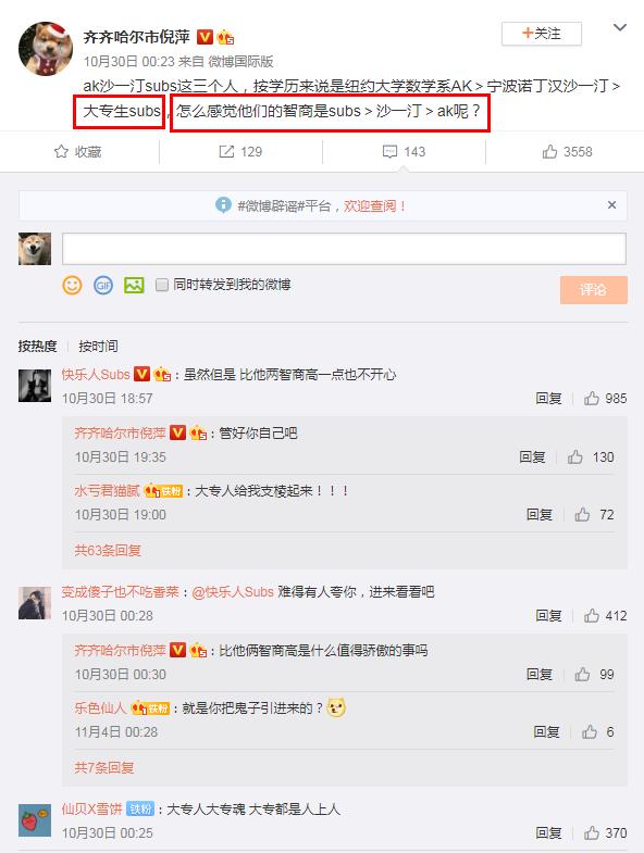 ![]() 作为新晋的“时间管理大师”,粉丝们曾经谈论他的智商问题,还把他和ak沙一汀这2个人进行比较,首先他们三个人subs的学历是最低的,是大专学历,其他两个人的学历都比subs要高,但是从外在的智商来看,subs是比其他两个人要强的。下面是当时微博上的讨论,由此我们知道了subs的学历是大专。 ![]() 至于张毅成是哪个大专学校,网络上没有详细的介绍,不过小编看到在昆明冶金高等专科学校的官方网站上在2018年曾经发布过一个消息,里面有张毅成的名字,他在物流学院读书,学的是商务管理,不知道这个张毅成是不是SUBS本尊呢??当然也可能重名! 此外,网络上还有一个说法是,张毅成大专专业学的是画画,那么下面这个张毅成就不是本尊了 ![]() |