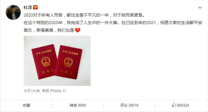 今日,杜淳在微博发文称自己在2020年完成一件人生大事,本晒出2本红彤彤的结婚照宣布婚讯,收获了大量网友的祝福,现年39岁的杜淳终于结婚了!那让众网友好奇的是,杜淳的老婆是谁呢?