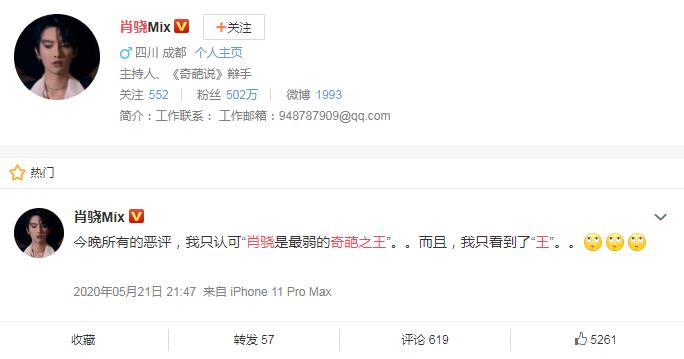 肖骁,一个奇葩说上的“老奇葩”曾经连续六年参加奇葩说,前六季都参与过录制,但是在最新开播的第七季我们看肖骁也不在了,曾经在奇葩说的第六季的第一期(2019年10月31日),他跟小黑有一个辩论,主题就是“复活一个你最爱的人”,在节目上他谈及了想让谁重新回到奇葩说的舞台上的问题,他说每一个离开的“老奇葩”都活在大家的心里,这样才是真正的成功,言外之意就是不需要非得回到舞台上。下面是当时的名场面视频: |