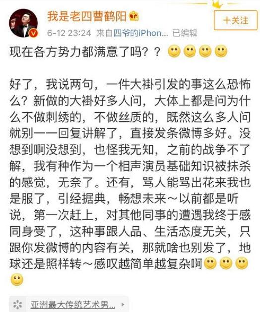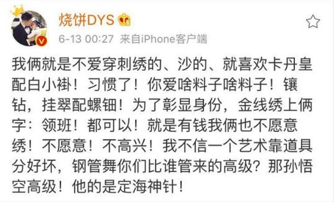 事后烧饼也发文称,衣服不代表水平,而且关于大褂等级的事出自郭德纲的相声中的一个段子,并不是真实的。