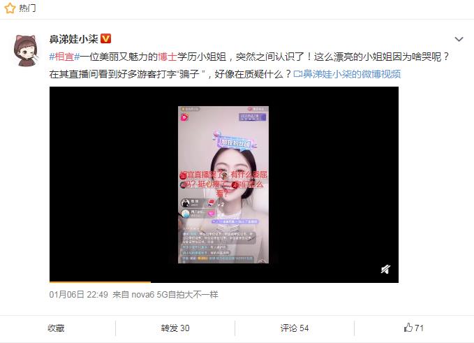 在不少人看来“女博士”不是一个好词,人们会死板的认为女博士长的一定会丑,光知道学习,不懂的风情,而在抖音上有一个女博士“相宜”彻底改变了人们的这种看法,相信不仅长的漂亮,而且还会玩直播,跟网友打成一片,目前她在抖音上已经收获了超过970万的粉丝。不过人红是非多,相宜在火了之后,有人质疑她的学历,认为她只是大专生,博士是公司给包装出来的,对于质疑,相宜在直播间里哭诉,但是没有拿出实际的证据来反驳,这让不少喜欢她的网友替她着急。