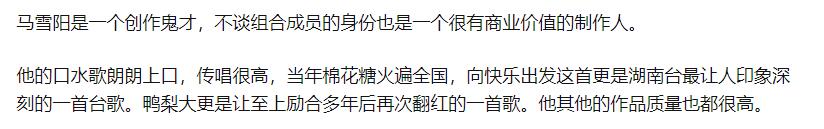 除了大牌制作的综艺节目,有一款《上新了故宫》也在大家的热议中迎来了新的一期,嘉宾马雪阳,看名字真的好陌生,其实他是07年的快乐男声呢,出道之后也有很出色的经典火爆作品,甚至还有很多人间美好的外号昵称,现在来一一回顾一下吧,马雪阳为什么叫刀刀、火星兔、人间仙兔,还有他写过哪些歌? 马雪阳为什么叫刀刀、火星兔、人间仙兔, 马雪阳被叫做刀刀是因为他的QQ名,叫做“阳刀俎”,大家都知道QQ名嘛,一般都是起的自己最喜欢的名字,虽然谁也不知道是个啥意思,看着还有点中二,但是耐不住这是真自我嘛,所以粉丝一看这还有这名呢,于是从“阳刀俎”这个名字中提取了刀刀作为昵称来亲切称呼马雪阳啦。 火星兔是马雪阳的爸妈给起的昵称,这个在一次采访中,马雪阳自己讲述过了,所以这个昵称应该会更火的吧,而且还是被马雪阳作为微博名给用起来的。这些关于兔子的昵称,都是因为马雪阳本人很喜欢兔子,被粉丝发现他很喜欢一个粉色兔子的表情包,而且他的人看上去软萌可爱,有点像《百变小樱》中的雪兔哦。所以渐渐的关于他兔子的昵称就越来越多,然后就延伸出了火星兔。 人间仙兔就是粉丝给的称呼啦,这个是对他雪兔的气质,仙兔的颜值满满的认可,马雪阳就是这样又雪白又仙气的神仙人物。 他写过哪些歌? 马雪阳写过的歌曲有《禁战》《棉花糖》《鸭梨大》《繁星》《光芒》《甜心》《出言不逊》《卡拉是个girl》《小镇青年》等等,其中自然是《棉花糖》更甜我们的心,随着歌词你就是我心中的棉花糖,甜蜜的梦想,大家的心已经开始融化,去畅享甜蜜恋爱了,这估计也就是有着甜腻可爱性格的马雪阳才能写出的歌曲了。 其实要不是这样点出来,大家还看不出来马雪阳居然写了这么多歌曲,或者这首歌居然是马雪阳写的,的确马雪阳的名气在娱乐圈并不怎么大声,人也比较低调,但不管怎么说,喜欢他的人一直都在喜欢他,而不了解他的人,在了解之后也会喜欢他,这就是马雪阳的魅力了。