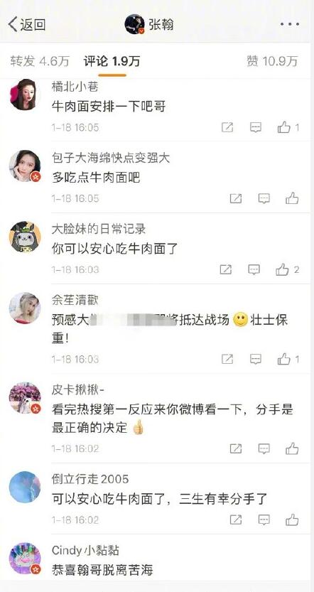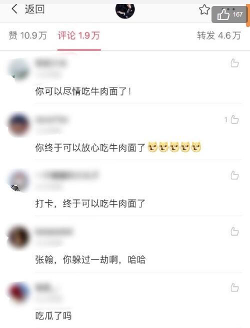 原来在2015年时,张翰在微博中发布了一条自己吃牛肉面的微博,结果有粉丝在下面评论说“郑爽都瘦成这样了,你还有心情吃牛肉面?”