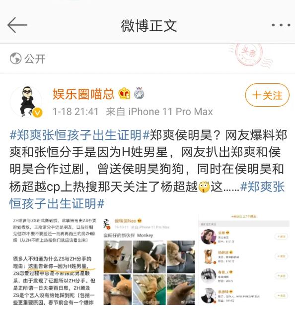 郑爽最近遇上大麻烦,目前来看已经基本实锤了,那就是跟张恒有2个孩子,DY产子,而且在孩子7个月大的时候还打算遗弃孩子,在网友看来这是不可原谅的,然后豆瓣上还曝光一个大料,说张恒和郑爽之所以分手,是因为郑爽在和张恒交往期间出轨了一名H姓男星,这名H姓男星跟郑爽有过合作,根据这一线索,网友纷纷猜测该名H姓艺人是侯明昊,因为两个人曾经在2019年4月份一起合作新剧《只问今生恋沧溟》,郑爽还曾送侯明昊小狗狗作为礼物,而拍摄这部剧的时候郑爽和张恒还在一起呢,不过对于这个传言侯明昊工作室第一时间给出了辟谣,其实这种八卦有点太牵强,艺人之间就不能有普通的朋友关系了吗?就跟前几天李易峰金晨同去一个朋友家吃饭,被拍下来,就有yxh造谣说是两个人在谈恋爱,这是典型的“捕风捉影”。 |