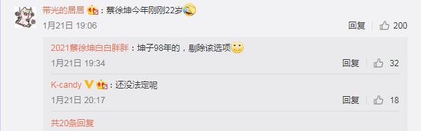 蔡徐坤,1998年生人,今年刚22岁,年龄上不符,PASS!