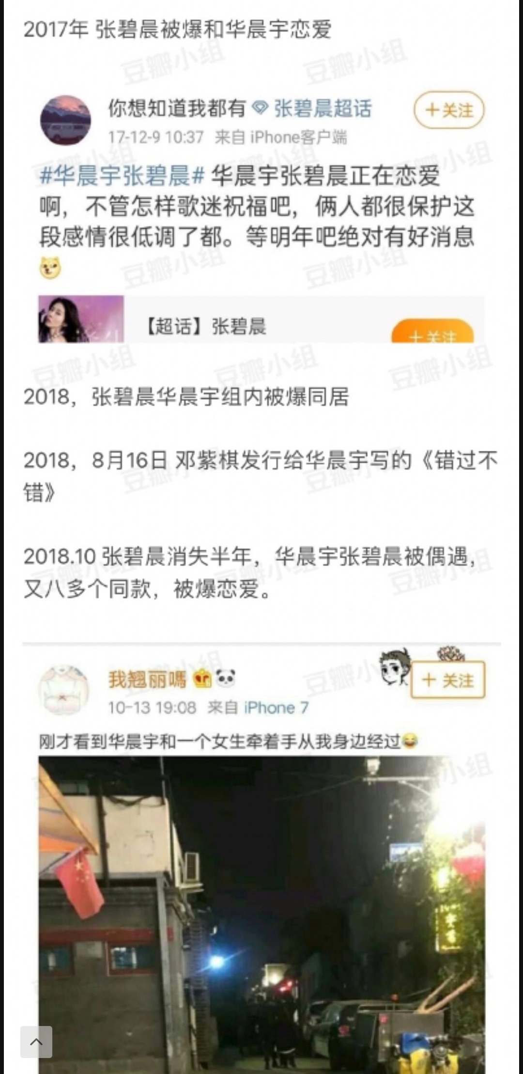 ![]() 再到2017年,有媒体曝出张碧晨和华晨宇恋爱,对于双方工作室都予以否认,不过根据张碧晨公布自己怀孕的时间来看,当时两个人恋爱是实锤了,张碧晨怀孕是2018年,两个人疑似是在这个事件同居,华晨宇和邓紫棋的分手应该就是在2017-2018年这个事件点了。 ![]() 再到后来,2019年邓紫棋曾说自己跟华晨宇分手是“被迫分开的”,不知道是不是因为张碧晨怀孕生子的事导致“被迫的”呢?邓紫棋说自己花了1年的时间才走出来,应该就是用了2018年这一整年。 ![]() |