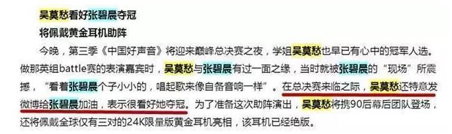 吴莫愁作为学姐当时很看好张碧晨,曾在微博中发文支持她。