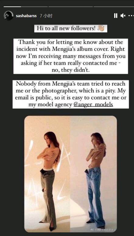 下面是模特:sashabarss发布的相关作品 ![]() 下面是孟佳的,目前孟佳团队已经给出道歉声明,说是团队先定稿的,然后让孟佳选择,孟佳并不知道是抄袭,对这个比较满意就选了,责任在于团队,目前已经跟原作者积极沟通,并且原作者也已经回应了。 ![]() 根据INS的资料来看,该名模特来自意大利米兰,名字叫萨莎巴尔斯(sashabarss),下面是她在自己的INS上进行的回应 ![]() 下面是她公开分享的自己一些写真集以及正面的照片 ![]() ![]() ![]() |