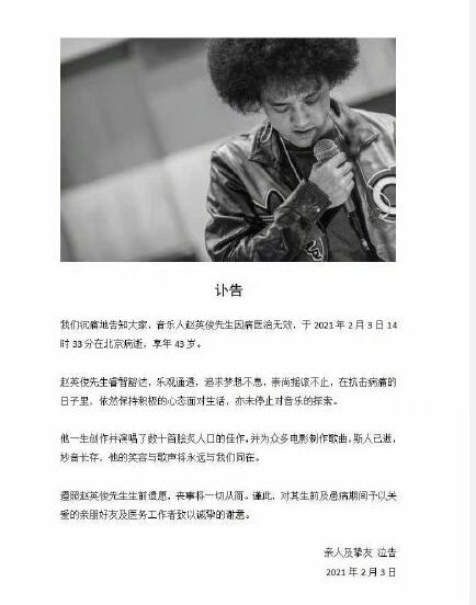 今日,音乐鬼才赵英俊因病在北京去世,享年43岁,据传去世原因是因为常年熬夜引发的肝癌。
