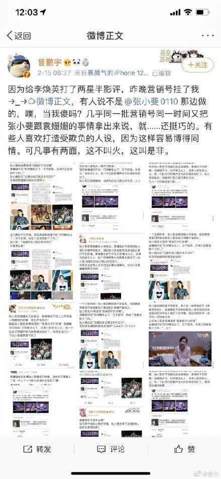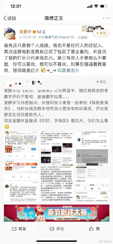 ![]() 这还不算完,在《你好,李焕英》上映之后,孙茜的经纪人曾鹏宇连续三天吐槽这部片子是烂片,还给打分两颗星,对于曾鹏宇恶劣的行为,网友们纷纷吐槽,称孙茜是“糊咖”“怪不得这么多年不红”等等。其实张小斐除了在《我就是演员》上跟张小斐合作过之外,两个人还曾合作过小品,合作次数还是蛮多的,可能很多事并不是网友谈论的这么回事,就如袁珊珊和张小斐的事件一样,有可能只是表面看起来如此,背后人家还是好朋友呢! ![]() ![]() ![]() ![]() |