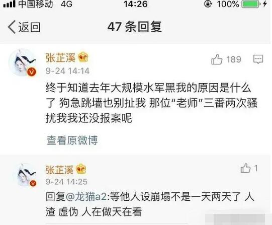 张芷溪直接在微博硬刚!称是这位“老师”多次骚扰自己!