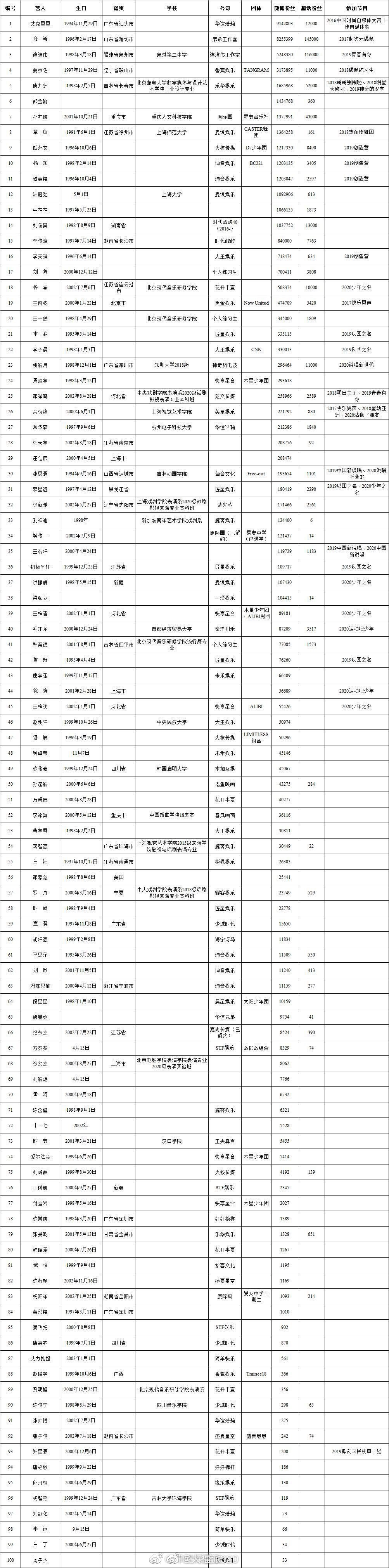 在青春有你3的舞台上,选手亮相之后,不少人对高一百的印象是“小嘴很能说”,然后有现场的媒体记者说让其可以考虑参加《奇葩说》,高一百直接反怼“你才是奇葩呢”,不过有热心的网友很快发现,原来高一百还真的参加过奇葩说的面试,不过没入围,这就有点尴尬了哈!目前不少网友关心高一百的年龄和什么地方的人,小编找了一份青春有你3上100位选手的个人资料,但是里面竟然没有任何高一百的信息,根据其微博上的资料来看,他是2016年考入武汉大学艺术学院的,并且是1996年11月12日出生的,今年24岁了,目前根据资料统计青春有你3的选手年龄普遍在94年-2002年之间这个区间。