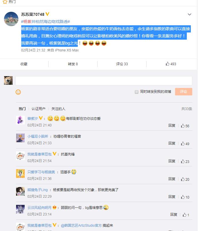 杨紫和井柏然的新剧《女心理师》曝光,两个人在剧中饰演情侣,并且有非常甜蜜的吻戏,对于杨紫,网友戏称她为“bg之光”,所谓的“bg之光”意思是指“演员跟异性搭配CP毫无违和感,非常的甜蜜”,bg这2个字母分别是“boy和girl”的缩写,意思是异性CP。当然“bg之光”绝对不是每个演员都可以这么称呼的,能称的上“之光”的一定要跟很多演员合作过,并且跟每个人合作起来都毫无违和感,看起来非常的甜蜜。有一些演员如果电视剧强行给安排CP会看起来很尬,比如把刘能和谢大脚安排CP就感觉怪怪的。目前内娱中还可以被称的上“bg之光”的演员,另外一个就是宋威龙。另外,“bg之光”只适合男女cp,不适合耽改!下面是杨紫和井柏然的CP,太唯美了! |