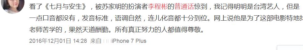 《七月与安生》电影版的主演是周冬雨、马思纯和李程彬,这部电影可以说是获奖无数,不但让周冬雨和马思纯夺得金马影后,也让当年还是新人的李程彬获得了最佳新锐演员的提名,本来以为李程彬应该星途坦荡,但没想到直到现在,李程彬依然是没能红起来。 可能很多人都不知道,李程彬是郑元畅公司旗下艺人,所以虽然李程彬名气不大,但是资源却不错,比如说刚出道就和很多大牌明星合作,第一部作品就是和郑元畅、王丽坤合作的电影《重生爱人》,后来李程彬来内地发展,和张艺兴、陈都灵合作了电视剧《求婚大作战》、和许凯、白鹿合作了《烈火军校》、和周洁琼合作了《大唐女法医》,通过这些作品,李程彬在内地也算有了一些知名度。 听过李程彬讲话的人都知道,身为台湾人的他,有一口流利的普通话,不像其他台湾艺人一样,有明显的台湾口音,之所以会这样,据李程彬所说,是因为在拍摄《七月与安生》时,导演要求他练好普通话,还专门请来了中戏台词老师专门来培训,再加上他自身也很努力,所以才会没有台湾口音。 李程彬正处于演员的黄金年龄,一心扑在事业上的他现在并没有结婚,毕竟对于艺人来说,结婚很可能会断送星途,尤其是对于一些有野心的艺人来说,结婚生子都不会太早,李程彬现在处于事业上升期,至少在明面上,短时间内不会公布自己结婚恋爱的消息,至于私下如何,小编就不得而知了。