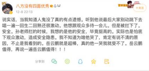 相声界的顶流岳云鹏已经是声名大起,不管看不看相声的人,都能被岳云鹏逗笑,而且不管是什么场合在岳云鹏的鼓捣下,都能变成相声舞台,这不,大家都挤到他的微博里面了,常常是岳云鹏的一条微博发言都能登上热搜,形成笑点,给大家带来很多点的欢乐,然而这样的岳云鹏也有低潮的时刻,据说岳云鹏有一个被主办方赶下舞台的事件,这个是怎么回事,还被要求必须结束演出? 岳云鹏被主办方赶下舞台事件怎么回事, 岳云鹏被主办方赶下舞台事件是在19年12月的事情,岳云鹏在一个个人相声专场上“岳享十年”节目活动演出的时候,正在表演的动劲的时刻,主办方派人赶上来跟岳云鹏说到点了,该谢幕了,这个主办场晚上十点必须要结束表演,岳云鹏表演的正海的时候,当然是一拖再拖,而主办方也是一催在催,于是现场就比较尴尬了。 主持人干脆直接宣称演出结束了,大家都该退场了,岳云鹏直接就落下泪来了,并表示一个相声演员多么爱自己的舞台呀,就给了他十秒钟。这太让他难受了,紧跟着岳云鹏是真的气恼了,甚至在现场就做出了扔掉话筒离场的行为。 岳云鹏被要求必须结束演出,而且是一点余地没给留的直接清场了,岳云鹏也气恼的扔话筒走人,这在德云社这些年,这样的事情是很少见的,岳云鹏当场都哭了,可见是委屈极了,很多网友表示现在的相声演员受不了低谷,这不行呐。 但其实有了解内情的观众倒是澄清了一下现场情况,主办方也都是临时搞出来的十点结束,这让人怎么接受的了,何况岳云鹏这么敬业,准备了这么多的节目还不让表演,现场还搞得这么混乱,岳云鹏的担忧也是在理的,不管怎么说,岳云鹏的节目也好,还是人品,敬业程度,其实都是值得我们追捧和热爱的。