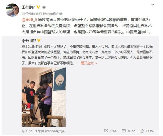 可能最近不少人都关注了《吐槽大会》,足球老将范志毅吐槽周琦、郭艾伦的事情迅速在体育圈流传,本来《吐槽大会》就是吐槽加洗白的地方,但因为范志毅吐槽的太狠,以至于引起了篮球圈的不满,前国家队队员王仕鹏就公开怒怼周琦和郭艾伦,认为他们丢了中国男篮的脸,这让人们不由得想起了周琦和王仕鹏之间的恩怨。 可能不关注篮球的人对王仕鹏不太熟悉,其实王仕鹏在中国男篮中是数得上名字的,他曾经为国家队和广州队立下了汗马功劳,可以说是广州队的灵魂人物,因此就算王仕鹏现在已经退役了,他在广州队也有不小的影响力,而他和周琦的恩怨,要从19年开始说起。 周琦作为小辈,其实在王仕鹏面前是矮一头的,所以在19年的时候,周琦和王仕鹏约好了时间,但周琦却放了鸽子,因此让王仕鹏非常愤怒,后来直接在微博发文斥责周琦,有传闻说当时王仕鹏被气哭了,虽然后来两人和解,但还是不尴不尬,再后来世界杯上,周琦不算失误,让中国队输给了波兰,又把解说席上的王仕鹏气哭了。 其实王仕鹏并不是对周琦有意见,他只是恨铁不成钢,王仕鹏虽然已经退役,但还是从事着篮球的相关工作,他经常会解说篮球赛事,还是广州体育学院副教授,可以说是身兼数职,所以看着不争气的晚辈,他总是忍不住想要说教一番,因此才会在周琦参加《吐槽大会》的时候发声,毕竟范志毅讽刺的不只是周琦一人,而是整个篮球圈。