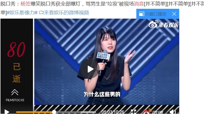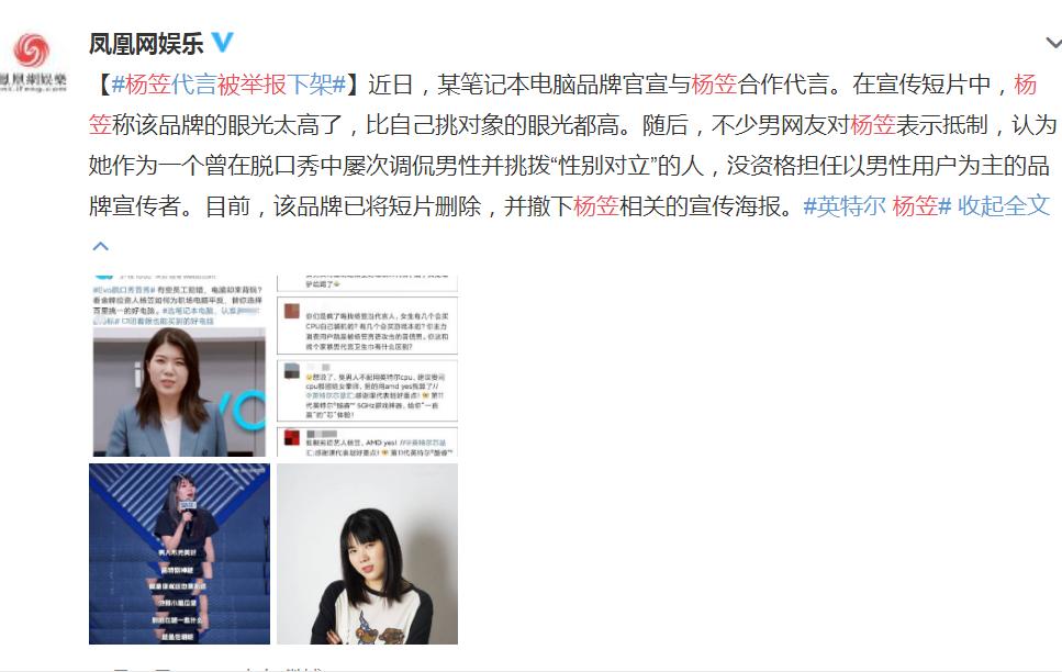 似乎是从227事件开始,饭圈就形成了一种很不良好的风气,那就是动辄举报,一些饭圈言论总是要上纲上线,站在“大义”的角度去做一些让人无语的事情,比如说最近脱口秀演员杨笠因为代言英特尔,就被一些人给举报了,他们认为杨笠是挑起“性别对立”的“女拳”,说杨笠“言论不当”,直接把杨笠的代言搞掉了。后来杨笠去某个品牌直播间的时候,又有一大群人涌入直播间抵制杨笠,最终商家妥协,让杨笠从直播名单上消失。 |