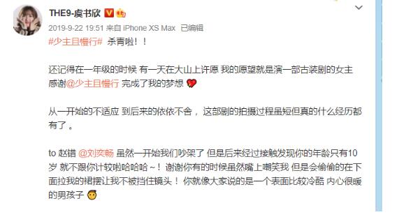 刘奕畅虞书欣互撕是怎么回事 刘奕畅虞书欣互撕的事情发生在两人合拍电视剧《少年且慢行》的时候,刘奕畅和虞书欣两人分别饰演剧中的男女主,因为是第一次合作,刚刚进组的时候对对方都不是很熟悉,于是闹出了一些误会,像是虞书欣在微博上用自己的小号说刘奕畅演戏不看剧本,而且还有翻脸就走人的随性举动,这在虞书欣看来是十分惊讶的,都没见过这样的演员,令虞书欣十分的无语。 然后刘奕畅也没有什么让着女生的意思,用自己的微博反驳说虞书欣说台词看小抄等等的,然后两人又是对对方的指责做出辩解。其实这些事情也就是两人在吵吵,看起来并没有造成什么不良的影响,也没有其他人站出来帮腔,一些无伤大雅的互撕内容,一时间两人的争吵有点显低龄幼稚,跟小孩子吵架一样了。 不过很快的虞书欣刘奕畅就说开了,其实这样大张旗鼓的互怼,还有点欢喜冤家的意味,后面和好了也很真诚的夸赞对方,当然还不忘表明对方只有10岁,所以不计较了,看得出来两人都是可可爱爱的小学生,所以网友们也表示不计较了,这样的不打不相识,感觉很真感情,说起来还挺羡慕两人的。 他女友肖燕资料照片 刘奕畅的女友并不是肖燕,两人都是单身状态,刘奕畅并没有女友,至于和肖燕之间,都是因为合作太多,被粉丝传出了绯闻了,肖燕也是一位演员,而且知名度还挺高的,就是饰演了《小娘惹》还有《招摇》中的琴芷嫣呢。 |