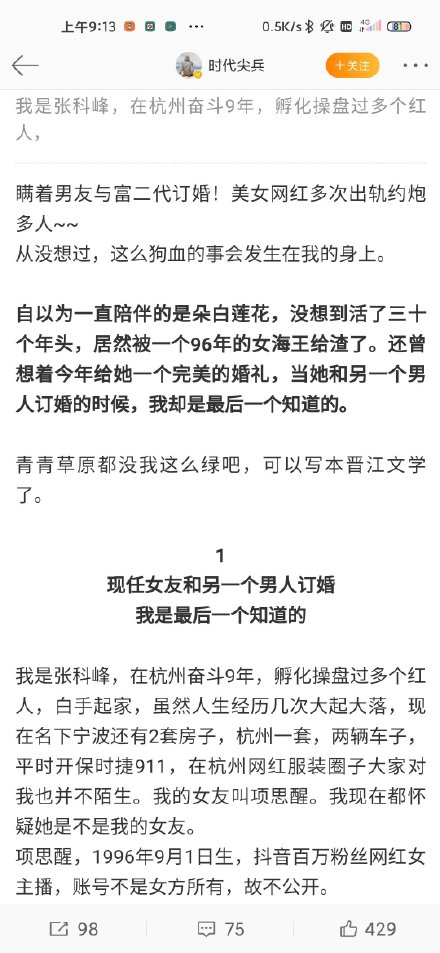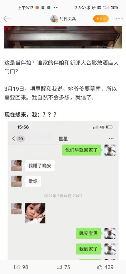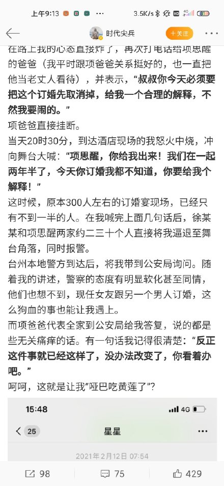 ![]() 下面是项思醒在微博上分享的自己的照片 ![]() 下面是她男朋友张某峰分享的故事,暂且当故事看吧,真实性等最终结果 ![]() ![]() ![]() ![]() ![]() |