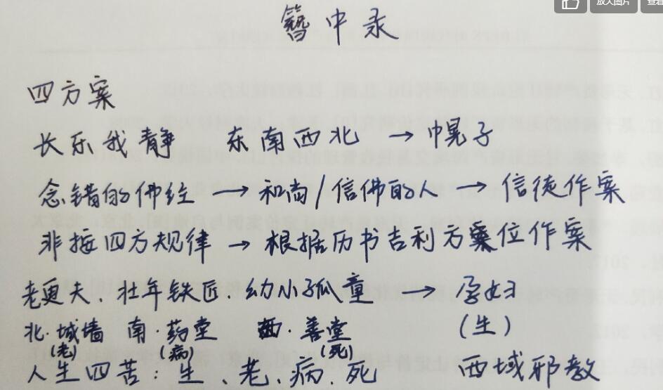 人生四苦:生老病死,老更夫是为老,看病的铁匠是为病,将死的幼童是为死,最后一个生对应的是孕妇刚出生的孩子。