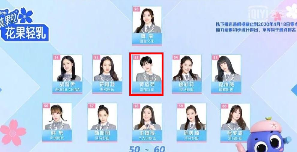 ![]() 除了这次参加华彩少年,黄欣苑最早还参加过青春有你2,不过在2020年5月份的第二次排名中,黄欣苑惨遭淘汰,排名53名,跟她一起淘汰的还有秦牛正威、王清、王欣宇、夏研、符雅凝、费沁源、苏杉杉、胡馨尹、冯若航、靳阳阳、孙美楠等。 ![]() 对于黄欣苑被淘汰,很多粉丝在微博上表示意难平,刚入坑,就被淘汰,太可惜了! ![]() |