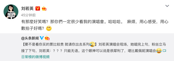 说起奶茶刘若英,很多人都会想到《后来》,其实当年刘若英也是非常火的,估计很多人都看过《粉红女郎》这部剧,刘若英饰演的结婚狂真的是让人们印象深刻,虽然现实生活中的刘若英,是一位文艺女青年,但因为《粉红女郎》,小编总觉得刘若英也是很有搞笑天赋的艺人。 虽然刘若英演过不少影视剧,但她的主业是歌手,刘若英出演的很多作品中,都是由她自己演唱的OST,不过随着她年纪的增加,现在很难听到刘若英的现场了,估计也只能在演唱会上才能听到她的现场。其实出道这么多年,刘若英有很多代表作,但人们最喜欢的还是《后来》。 因此在刘若英的演唱会上,经常会听到《后来》,但每一次听都会有不同的感受,除了《后来》外,《原来你也在这里》也是刘若英在演唱会上的必备歌曲之一,当初刘若英在2018年澳门演唱会上,就是因为在演唱《原来你也在这里》时被粉丝抢唱,并且带偏唱跑调,成了刘若英翻白眼的名场面之一。 当时刘若英正在唱“该隐瞒的事总清晰”,下一句“千言万语只能无语”还没唱出来的时候,就有粉丝在下面激动的抢拍唱了,刘若英无奈的翻了个白眼,后来有惊无险的唱完了这首歌,虽然说翻白眼的举动有些过了,但是刘若英和粉丝日常相处就是这样,而且刘若英当时是笑着的,所以不需要上纲上线,毕竟粉丝都觉得不是啥大问题,反而觉得刘若英可爱,路人就不必深究了。