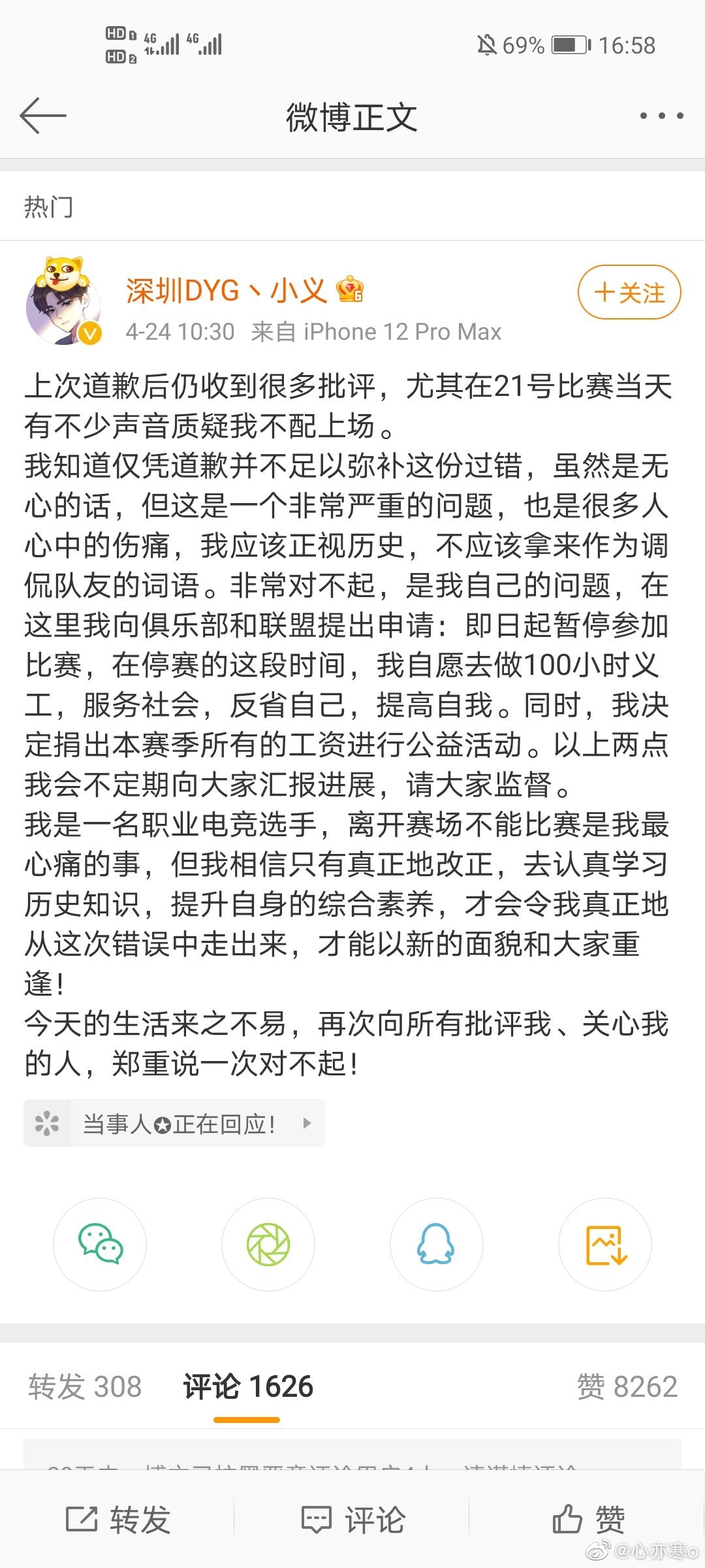 ![]() 口嗨事件发生在2020年10月4日DYG清清首播,在回放视频的95:47秒的时候,不过目前该回放视频已经被删除。在当天直播的时候,清清让易铮叫响一点,易铮当天可能不太舒服,说话不是很有力气,于是旁边的小义说:“说话有气无力的,跟东亚病夫一样”。下面是当时的对话全过程: ![]() |