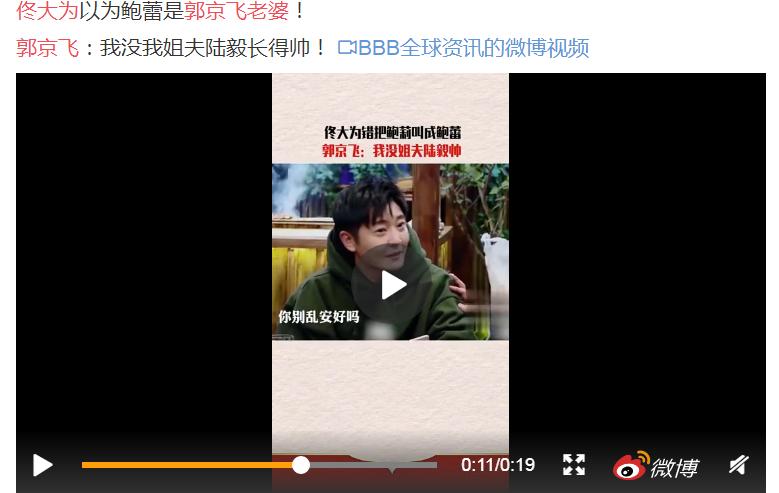 演员佟大为其实参加的常驻综艺节目并不多,在我们的印象中,佟大为算是比较低调的一位演员,当年佟大为也是玉面小生的代表人物,曾经出演过《玉观音》、《苹果》、《中国合伙人》等,印象中佟大为和陆毅夫妇的关系不错,那么佟大为和郭京飞认识吗? 直到郭京飞走红后,人们才知道他和陆毅是连襟,陆毅成名很多年了,而郭京飞是最近几年才被观众熟知,因此以前很多人都知道陆毅的妻子叫做鲍蕾,却不知道郭京飞的妻子是鲍蕾的亲妹妹鲍莉,其实鲍蕾和鲍莉长得还是非常像的,只能说姐妹两个看男人的眼光不错,陆毅和郭京飞都是非常不错的男人。 郭京飞和佟大为的关系应该也不错,他们一起参加过一档综艺节目,这个综艺叫做《大叔小馆》,作为节目中的常驻,郭京飞和佟大为经常会互怼,在节目第九期的时候,佟大为把郭京飞的老婆莉鲍的名字叫成了鲍蕾,当时郭京飞好一会才反应过来,赶紧出来解释,真的让人忍俊不禁。 因为《大叔小馆》是西瓜视频自制的综艺节目,所以在网上能找到的资料很少,毕竟这档节目有孟非还有金星两个“名嘴”,很容易出现争议的内容,而郭京飞和佟大为在常驻嘉宾中算是小辈,因此经常会被“欺负”,不过郭京飞的综艺感不错,所以他后来才会参加《极限挑战》第六季和第七季,成为这档综艺的常驻嘉宾,可见外界对他的认可。