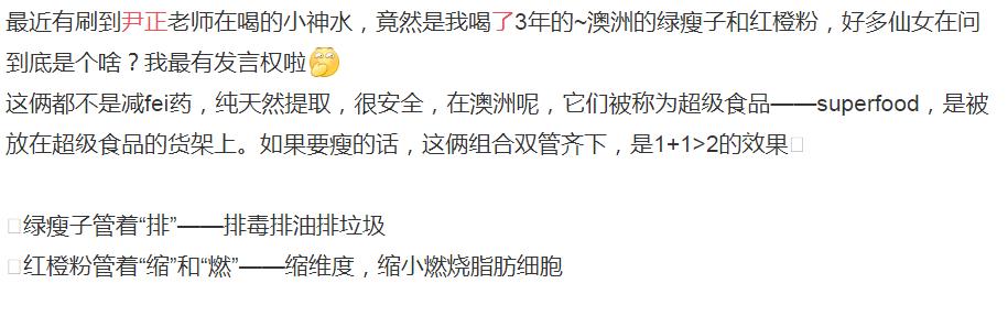 减肥对于易胖体质的人来说,确实是一件非常痛苦的事情,毕竟很多易胖体质的人,喝口水也是会发胖的,所以很多明星一会胖一会瘦,就是减肥引起的,说起娱乐圈易胖体质的人,很多人都会想到尹正,尹正的演技一直是在线的,但是他的易胖体质给他带来了很多困扰,那么尹正都是怎么减肥的? 最近尹正的减肥餐在小红书上火了,很多人都非常喜欢看尹正痛苦减肥的样子,据说尹正的减肥餐是由专业的老师制定的,所以这个减肥餐是十分科学的,而且尹正吃减肥餐时痛苦的样子,真的很搞笑,他的五官完全不受控制,尤其是他喝小神水的时候,真的给网友带来很多乐趣。 尹正喝的小神水就是螺旋藻加红橙粉,网上就有卖的,据说口感十分不佳,因此尹正喝的时候才会那么痛苦,有时候尹正喝螺旋藻的时候还会加蛋清,所以喝起来会有腥味,尹正能够坚持这么多天一直服用,真的是毅力惊人,后来尹正的减肥成果初见成效,可见他的减肥餐还是非常有效果的。 据说小神水的成分就是螺旋藻和红橙粉组成的,螺旋藻有消除水肿的作用,而红橙粉据说可以清肠减脂,所以小神水的作用就是用来减肥的,但是它不算是减肥药,只是促进减肥的辅助产品,对人体没有副作用,最近小红书上这款产品非常火,自从尹正把它带火后,很多想要减肥的人都尝试着在用,不过效果到底如何就不得而知了。
