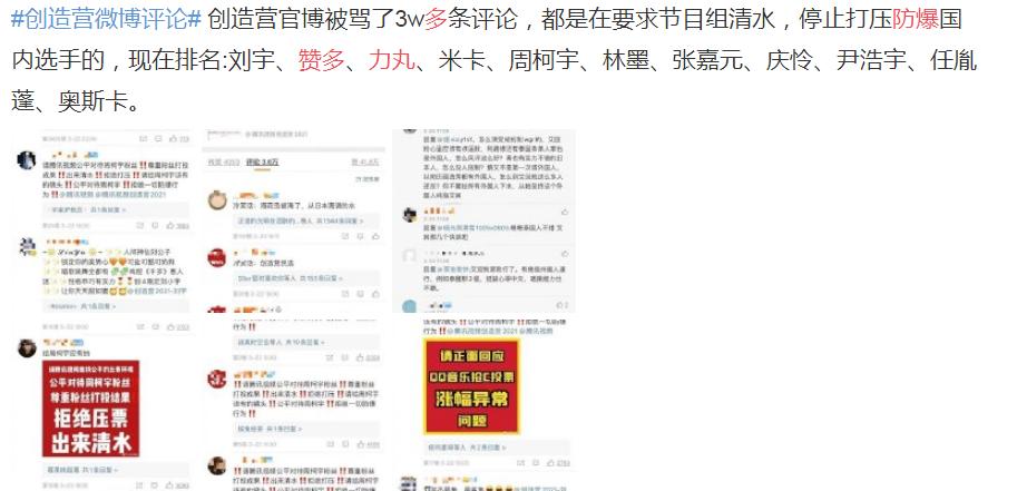 最近《创造营2021》终于结束了,这档节目从开播以来,一直处于风暴中心,不管是看热闹的还是选手粉丝,几乎每个人都有自己的观点,因此皇族说、剧本说、防爆说层出不穷,每家粉丝都说自己爱豆委屈,懂不懂就是被防爆了。 比如说在《创造营2021》决赛前夕,有些网友一直阴谋论说节目组防爆国内选手,打压有实力的选手,出道位内定等,各种传闻层出不穷,再比如说决赛后,日本选手庆怜无缘出道位之后,庆怜粉丝都疯了,觉得节目为了防爆庆怜压了票数,也让庆怜狠狠虐了一把粉。 其实选秀节目的出道位,一直以来都有各种说法,而所谓的防爆,就是防止某位艺人爆红,所以为了防爆艺人,恶意剪辑、故意不给镜头、无缘出道位等,都是防爆的一种方式,在人们的印象中,资本总有办法得到自己想要的一切,而只有粉丝傻乎乎的真情实感而不自知。从《创造营》系列不难看出,资本的力量是强大的,没有资本的人是根本无法出头的。 其实防爆艺人的原因有很多,归根结底就是资本博弈,毕竟市场这一块蛋糕就那么大,实力强大的资本不愿意和别人分享,因此就会使出一些手段来防爆对家,以此来让自家艺人获得更大的利益,因此所谓的“民选”,其实只是资本操控下的“内定”而已,所以很多艺人有段时间突然黑通稿增多,很可能是因为他竞争到了好的资源,让对家眼红,所以职黑下场,试图来阻断他的上升之路。