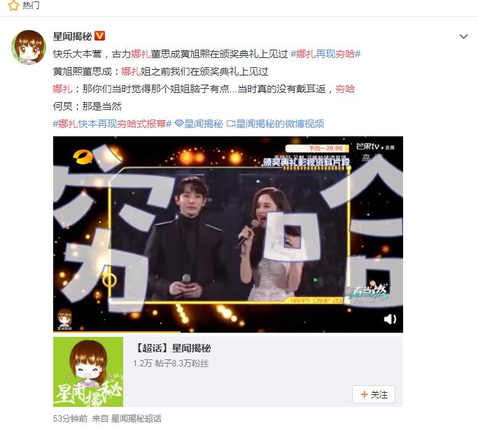 所以,穷哈指的是金请夏这个明星,如下图: ![]() 古力娜扎在快本的舞台上也给出了当时出现尴尬的原因:“没戴耳返”。。。 ![]() |