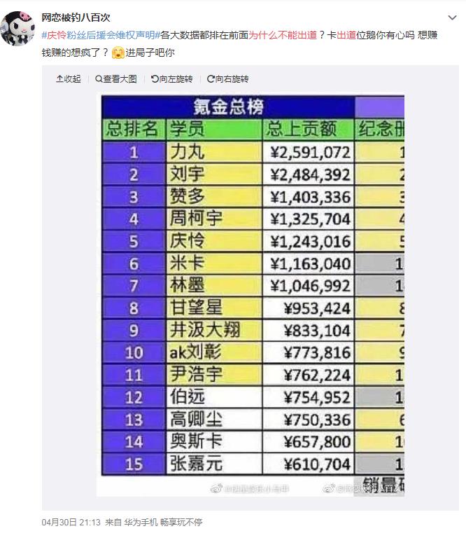 ![]() 对于庆怜不能出道的原因,有粉丝分析认为因为庆怜是“艾回”旗下的艺人,而艾回公司2018年官网上发生过一段令每个中国人愤怒的事,那就是作死的将台湾省和中国并列成国家,所以不能出道,不过,此事艾回马上道歉了,米卡也是艾回旗下的艺人,他是顺利出道了的。也有粉丝觉得是创造营节目组的问题,故意卡位让庆怜不出道,因为艾回已经有人出道了,给其他人留点机会,总之众说纷纭。 ![]() 有人列出数据表示,庆怜的人气非常好,理应出道。 ![]() 最后,很多人想知道为什么庆怜的粉丝自称为“island”,这主要是因为"island"与庆怜英文名Caelan,第二音节发音相似寓意着粉丝与庆怜的羁绊,然后s不发音 就是i land 谐音爱怜;而现在庆怜的微博名字也改为:“庆怜on_the_Island”,还有一层意思是“是我们给四海为家的少年的一处停留的岛屿”。 ![]() |